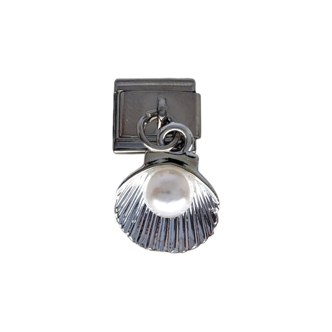 CHARM PARA PULSERA ITALIANA CONCHA DEL MAR CON PERLA COLGANTE