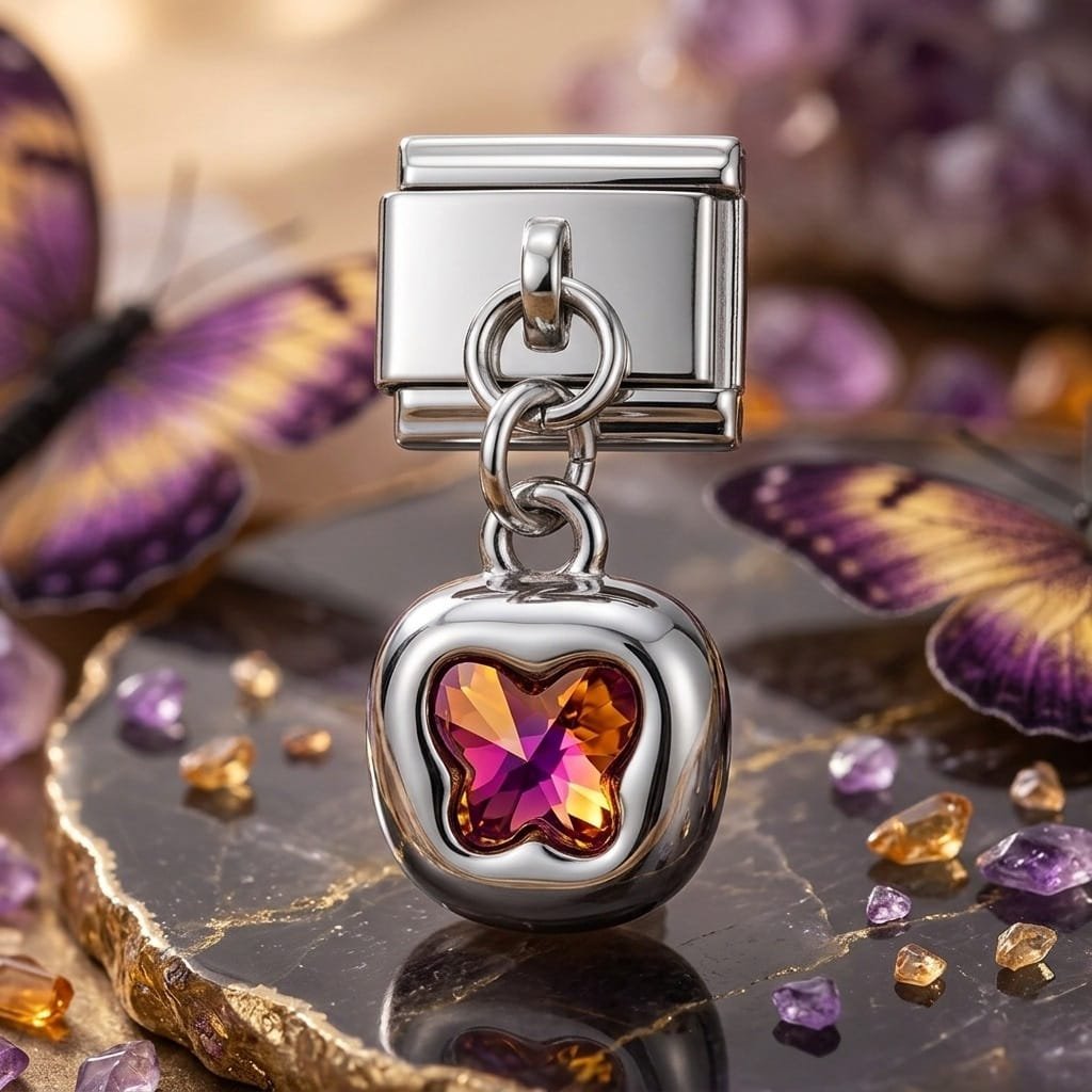 CHARM PARA PULSERA ITALIANA MARIPOSA ROSA COLGANTE