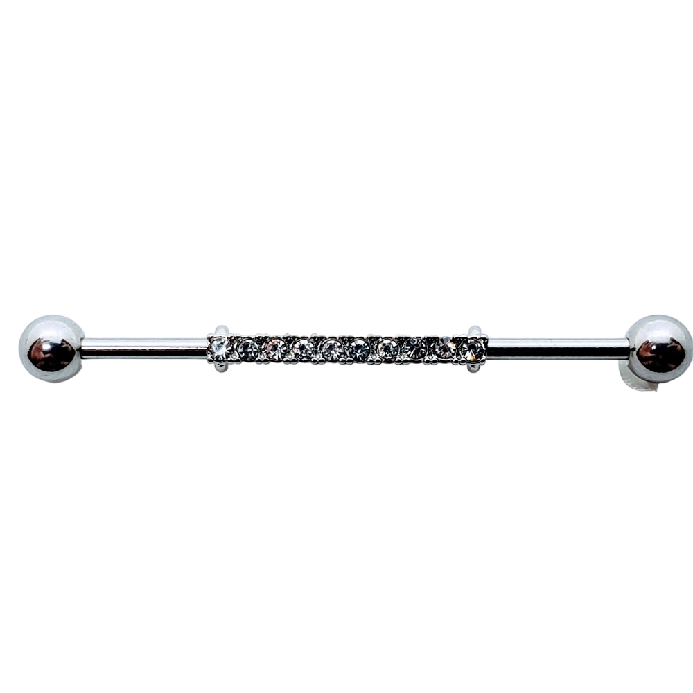 PIERCING INDUSTRIAL CON BARRA DE STRASS PLATEADO