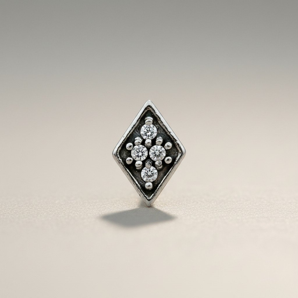 PIERCING LABRET ROMBO CON 4 STRASS P22