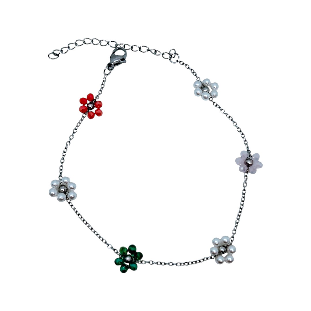 TOBILLERA DE ACERO T-121 (COLOR DE FLOR SE VARIA)